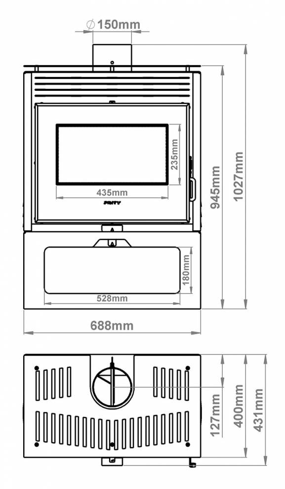 Διαστάσεις του θαλάμου καύσης, L x B x H 632 x 314 x 309 mm
