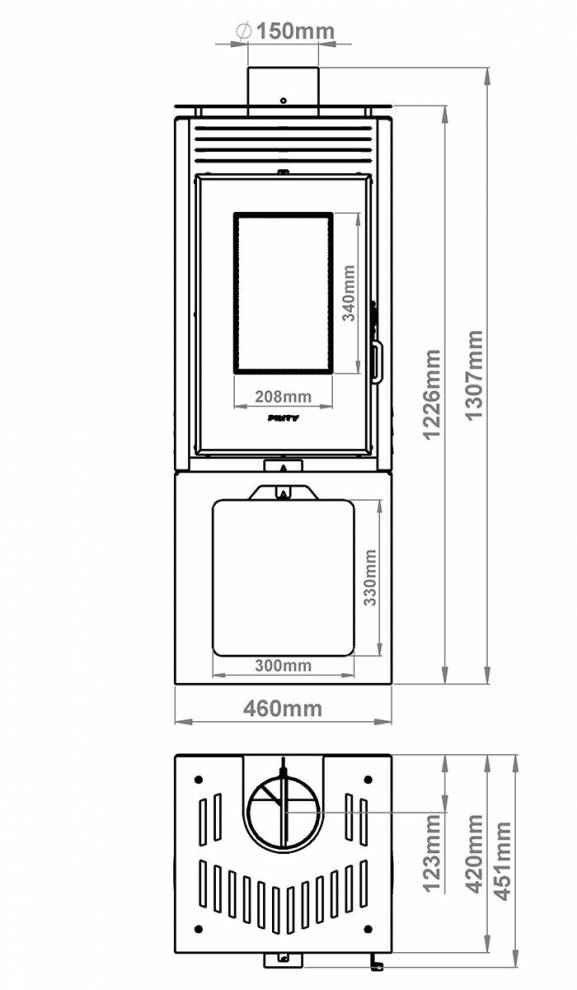 Διαστάσεις θαλάμου καύσης, Μ x Π x Υ 404 x 334 x 416 mm